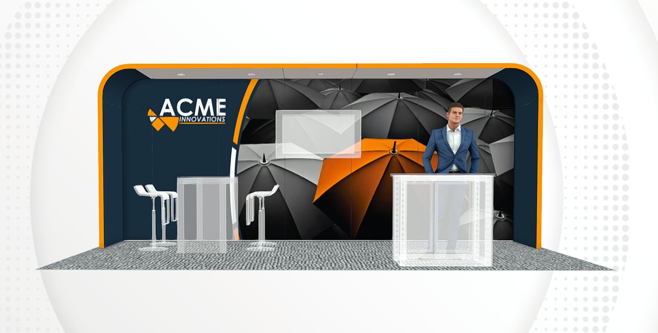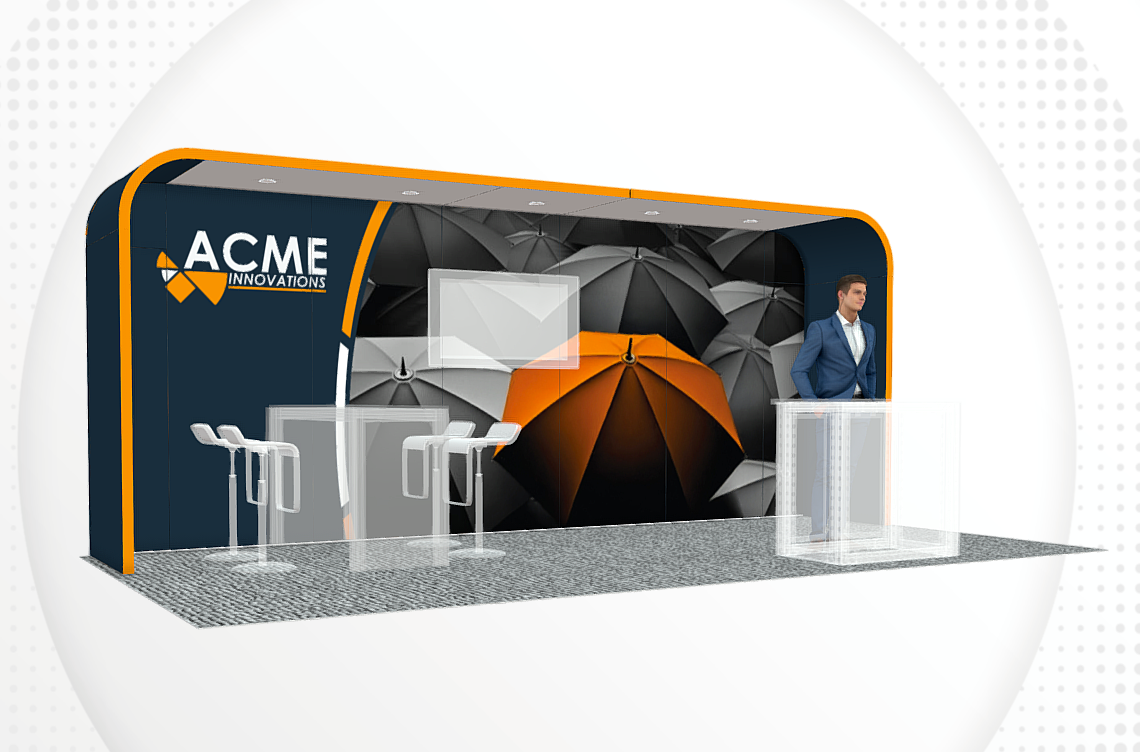 - Brandable graphic back wall, side panels, and overhead panels
