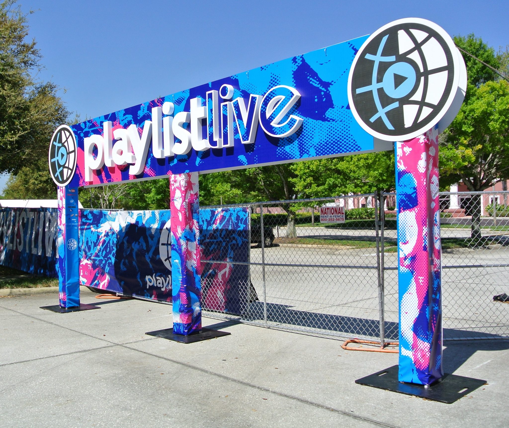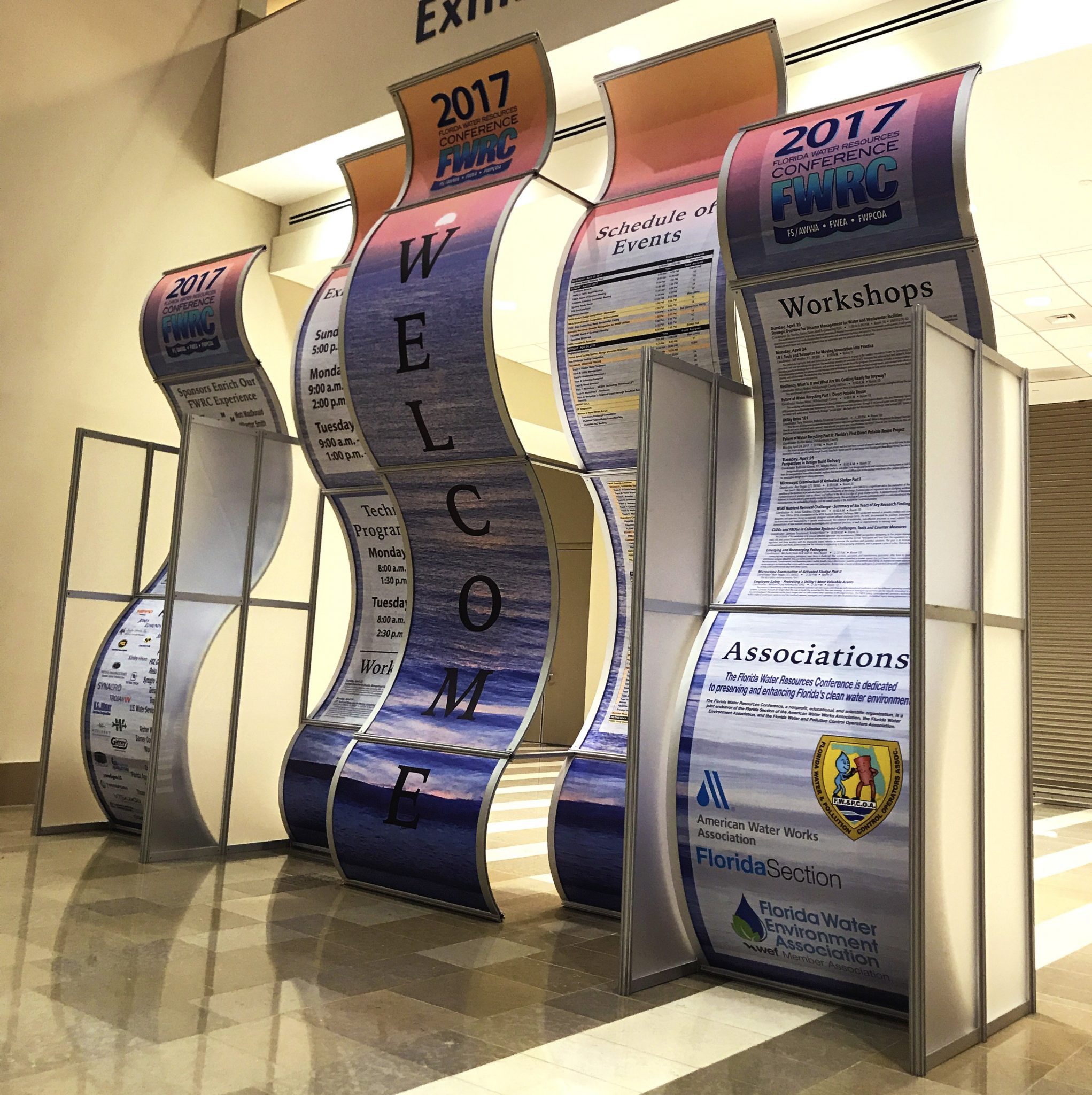 Simple but eye-catching, custom entrance units like this one for the ALMS Show wow attendees ...